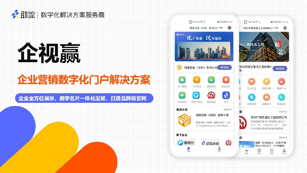 企視贏讓每個(gè)企業(yè)輕松擁有專(zhuān)屬的企業(yè)門(mén)戶小程序,為企業(yè)打造專(zhuān)屬的數(shù)字舞臺(tái)。企業(yè)可以充分展現(xiàn)自身優(yōu)勢(shì),吸···